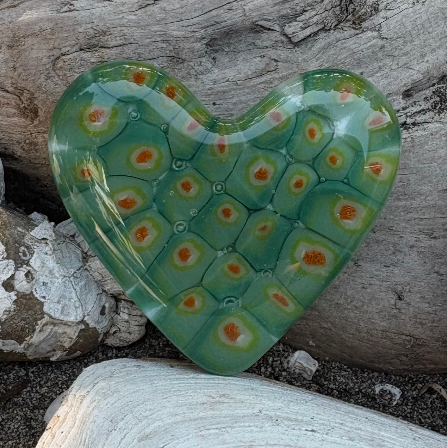 Peacock Eyes - Fused Glass Heart - 2” across and 12mm thick.