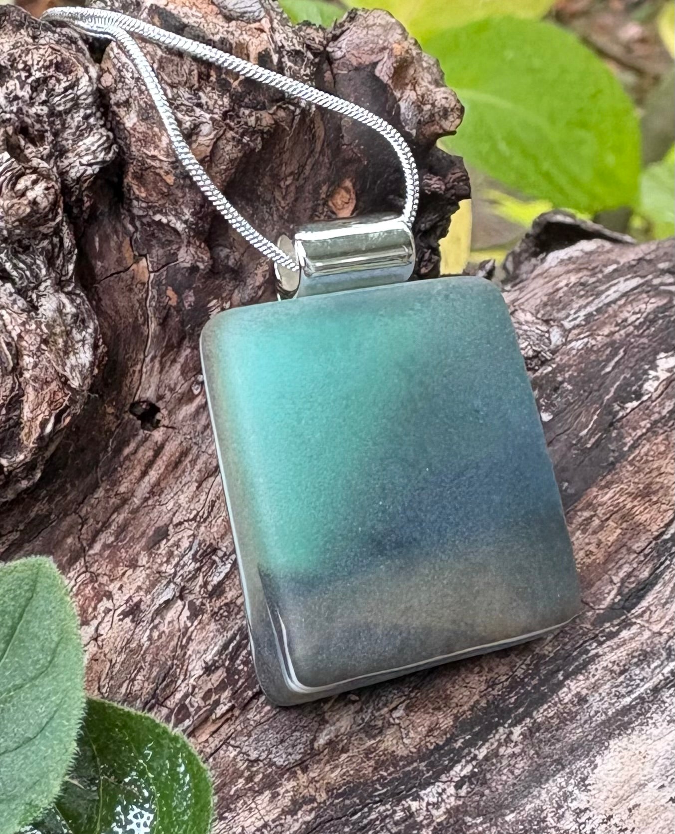 It was a dark and stormy night…  This stormy pendant has a matte finish and has more visible depth than shows through photographs. This piece measures 1 1/8” x 1 1/2” and is finished with a silver colored snake chain that measures 18 1/4”.